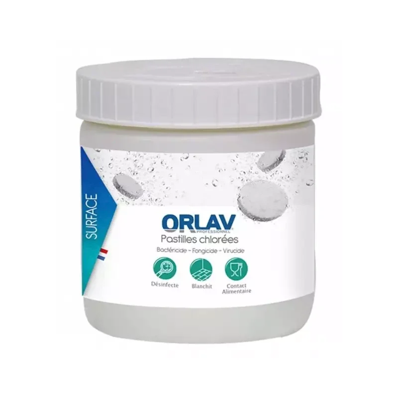 Les Pastilles chlorées sont des pastilles effervescentes qui libèrent une solution de chlore actif. Elles sont utilisées en collectivités (désinfection des sanitaires, poubelles, blanchiment du linge, surfaces diverses).